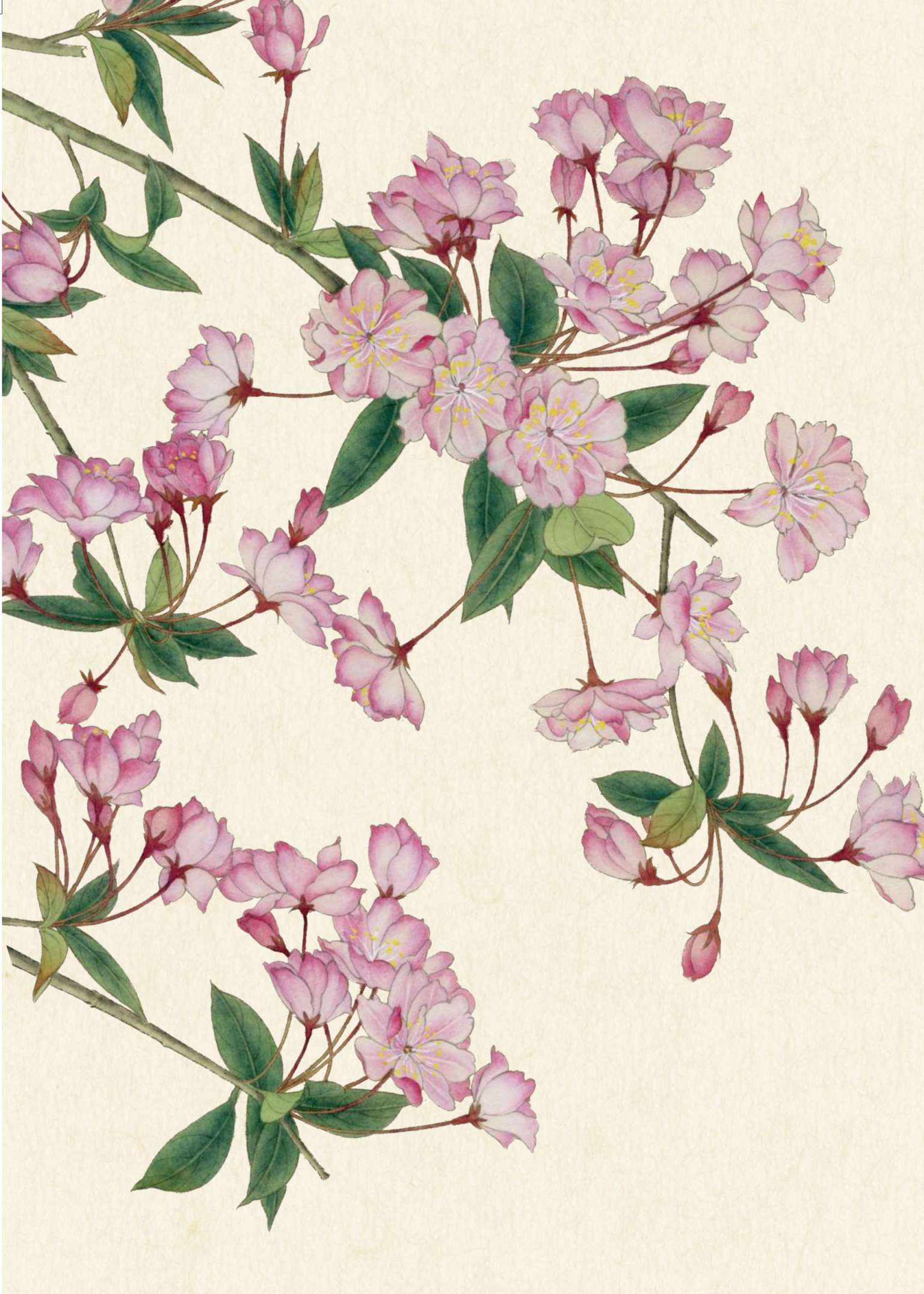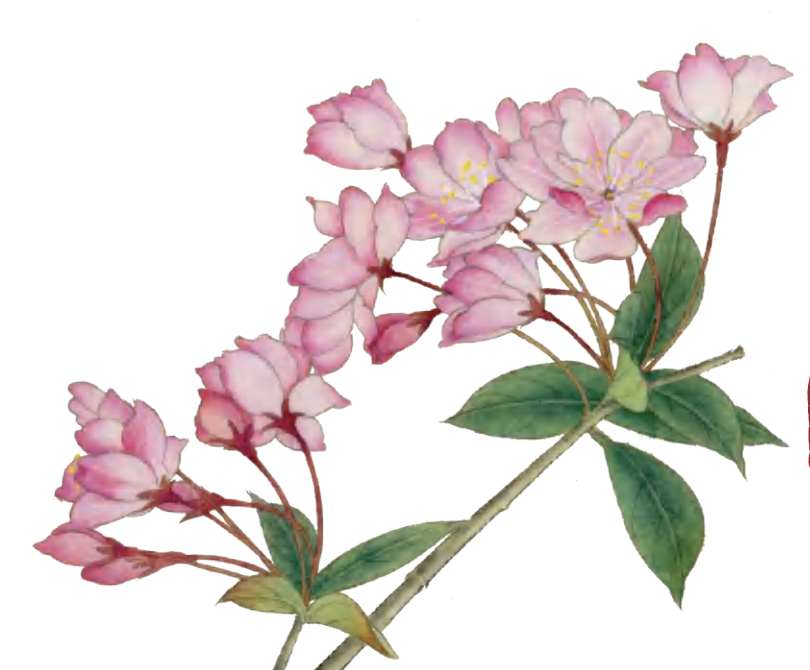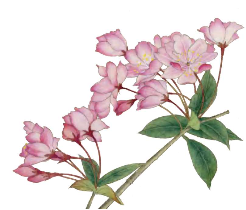 形 态 花4~6朵,组成伞房花序;花梗细弱,下垂,长2~4厘米,紫色,有稀疏柔毛;花径3~3.5厘米;被丝托外面无毛,萼片三角状卵形,长3~5毫米,先端钝,全缘,外面无毛,内面密被绒毛,与被丝托等长或稍短,花瓣常5数以上,粉红色,倒卵形,长约1.5厘米,基部有短爪;雄蕊20~25枚,约等于花瓣1/2;花柱4或5枚,基部有长绒毛;顶花有时无雌蕊。