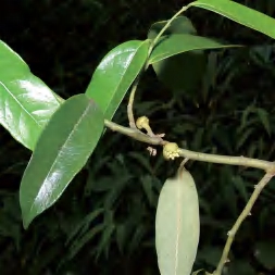 攀援灌木。果实和叶背被稀疏绒毛,其余无毛。叶纸质,长圆形,顶端急尖,基部圆形或宽楔形,叶背淡黄色,干后红黄色。花黄色,有香气,1~2朵聚生于叶腋;萼片卵圆形;外轮花瓣比内轮花瓣长,无毛,卵状三角形,内轮花瓣狭长;药隔三角形;心皮被绒毛,柱头顶端全缘。果圆球状,成熟时黑色,被短绒毛。花期3—6月,果期6—12月。前进、横石塘管理站更古、石门台有分布。叶可制酒饼药,果味甜可食。