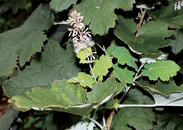 别名勃逻回、落回、菠萝筒、喇叭筒、号筒杆、大叶莲、三钱三等。直立草本,具乳黄色浆汁。叶宽卵形或近圆形,先端急尖等,常7或9裂,基出脉通常5条。大型圆锥花序多花,顶生和腋生;无花瓣;雄蕊24~30枚;子房倒卵形至狭倒卵形,柱头2裂,下延于花柱上。蒴果狭倒卵形或倒披针形。花果期6—11月。锦潭管理站联山有分布。全草有大毒,不可内服,入药治跌打损伤、关节炎等;可作农药。 4VjV7OmSWjUAZzImsyulMUY0fQp5y77nkMGdQ1i6oyX+iNVvdc6cfMgBpCECkW4f