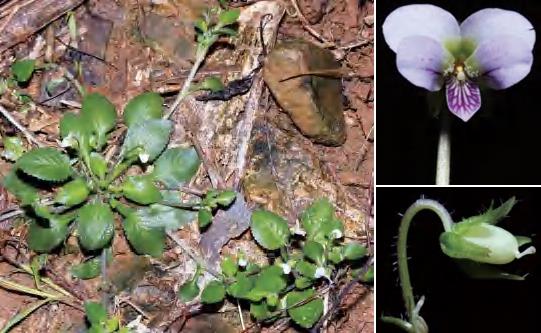多年生草本。无茎。叶基生,多数;叶片卵形、阔卵形等,两面疏具绒毛,基部深心形或阔心形,边缘密具圆齿。花淡紫色。蒴果椭圆体形。花果期3—10月。前进管理站乌田有分布。