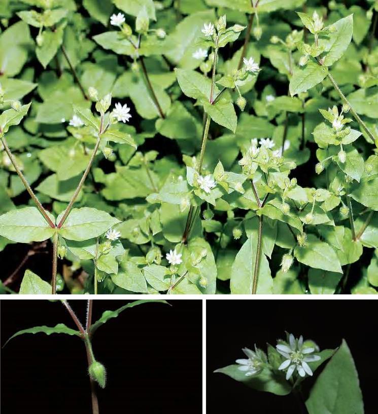 又名鹅肠菜。二年生或多年生草本。叶片卵形或宽卵形,顶端急尖,基部稍心形。顶生二歧聚伞花序;花梗密被腺毛;萼片外面被腺绒毛;花瓣白色,2深裂至基部;雄蕊10枚,稍短于花瓣;子房长圆形,花柱短,线形。蒴果卵圆形。花期5—8月,果期6—9月。前进、锦潭、横石塘、云岭、沙口管理站均有分布。全草可入药,具有祛风解毒的功效;幼苗可作野菜和饲料。