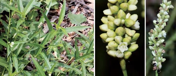 一年生草本。叶椭圆状披针形,顶端渐尖,基部楔形,边缘全缘,具短缘毛;托叶鞘膜质,淡褐色,筒状,疏生硬伏毛,顶端截形。总状花序呈穗状,顶生或腋生,花排列紧密;花梗明显比苞片长;花被5深裂;雄蕊7~8枚;花柱3枚,下部合生,柱头头状。瘦果卵形,具3条棱。花期8—9月,果期9—11月。锦潭、横石塘、云岭、沙口管理站均有分布。