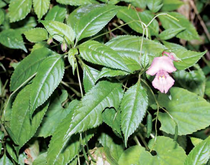 一年生草本。叶互生,卵圆形或卵状矩圆形,基部楔状下延,常具2个球形腺体,边缘具圆齿状齿,齿端微凹,具小尖。总花梗单生于上部叶腋,具2朵花,稀单花。花紫色,侧生萼片2枚,绿色;旗瓣大,扁圆形或肾形;翼瓣无柄,2裂,基部裂片长圆形,顶端圆,上部裂片斧形,全缘;子房纺锤状,直立,顶端具5~6小齿裂。蒴果长圆形,顶端具3~5齿裂。花期9—10月,果期10—12月。锦潭、沙口管理站联山、石坑有分布。 nT8x8yAUTG2rFy+SzXsoHInEoDmYlGdSla6xNOWeNEcwh1zooHyECRutW2dnSNgf