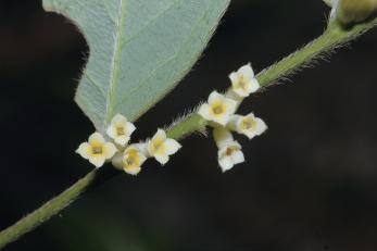 别名野黄皮。常绿灌木。叶互生,近纸质,椭圆形等,先端钝或钝尖,基部宽楔形,边缘全缘;叶柄短,密被白色丝状长粗毛。花白色,常3~7朵组成头状花序,腋生或侧生;无花梗;花萼筒裂片4枚,广卵形,外面密被淡白色丝状绒毛;雄蕊8枚,2轮,生于花萼筒的中部以上;花盘一侧发达;子房椭圆形,无柄或几乎无柄,密被白色丝状粗毛。果实未见。花期2—4月,果期5—8月。前进、锦潭、横石塘、云岭、沙口管理站均有分布。茎皮纤维可造纸或人造棉。