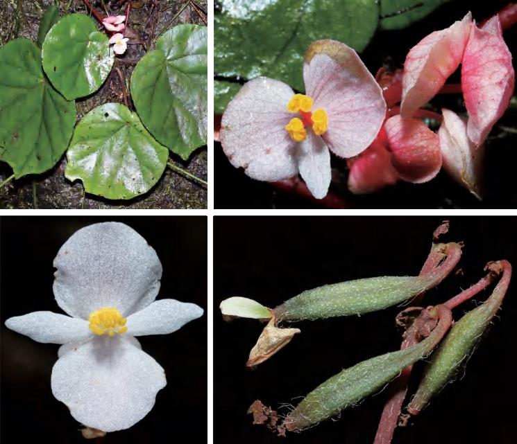 别名团扇秋海棠、老虎耳、石上海棠。多年生草本。叶基生,具柄;叶片两侧极不相等,轮廓近圆形,先端圆钝或急尖,基部偏斜,心形,宽侧呈圆耳锤状,掌状脉5~7条,直达叶缘。花白色或粉红色,2~7朵。雄花花被片4枚;雄蕊多数,离生。雌花花被片4枚;子房长圆形;花柱3枚,离生,中部以上分枝。蒴果下垂,纺锤状。花期9月,果期10月开始。前进、锦潭管理站乌田、八宝有分布。 nT8x8yAUTG2rFy+SzXsoHInEoDmYlGdSla6xNOWeNEcwh1zooHyECRutW2dnSNgf