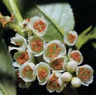 灌木或小乔木。叶革质,长圆状椭圆形等,顶端渐尖,基部楔形,边缘有细钝锯齿。花1~5朵簇生于叶腋。雄花萼片5枚,革质;花瓣5片,白色;雄蕊15~22枚,花药具多分格。雌花萼片与雄花同;花瓣5片,白色;子房圆球形,3室,花柱顶端3裂。果实圆球形,熟时呈紫黑色。花期9—11月,果期翌年6—8月。锦潭管理站联山有分布。