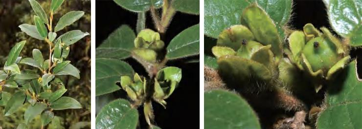灌木或小乔木。叶革质,常聚生于枝端,椭圆形等,顶端短渐尖,尖头钝,基部楔形,边全缘。花两性或单性;两性花萼片5枚;花瓣5片,淡黄白色;雄蕊约50枚,长短不一,花药长圆形,远比花丝长,无毛;子房圆卵形,花柱短,顶端浅2裂。果实圆球形,小苞片和萼片均宿存,花柱宿存,顶端2浅裂。花期5—7月,果期8—10月。锦潭管理站八宝有分布。