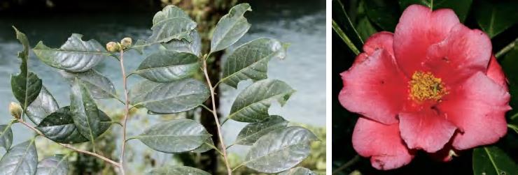 别名广宁红花油茶、红花油茶。小乔木。叶椭圆形等,先端急尖,基部阔楔形,边缘上半部或1/3处有疏而锐利的锯齿。花顶生,红色,无柄;苞片及萼片11枚,花开后脱落;花瓣6~7片,红色,基部连生;雄蕊排成5轮,外轮花丝下部2/3连生;子房被毛,花柱顶端3~5浅裂。蒴果卵球形,3~5室,表面红色,平滑。花期1月,果期4—11月。锦潭、横石塘管理站联山、石门台有分布。可作绿化观赏物植,根、花可入药。