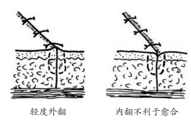 进针、出针、缝线走行、缝合深度、缝合的外翻或内翻等,必须根据不同的组织和器官符合相应的要求。
