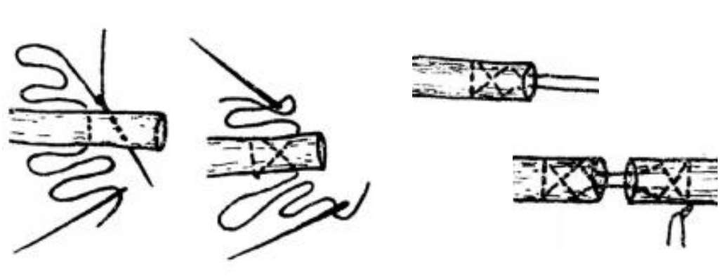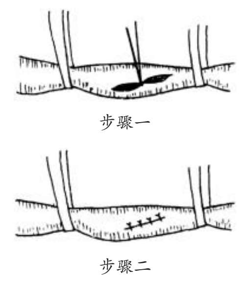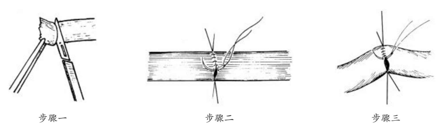 1.缝合针选择:通常选用两枚规格适当的直针,没有直针时可采用缝衣针代替,也可将圆弯针扳直代替。