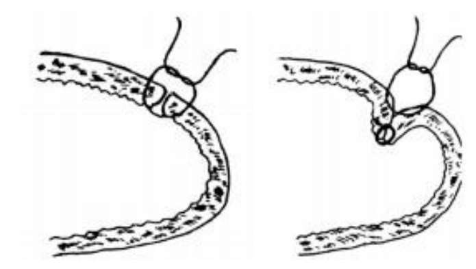 肠管修补缝合多用于肠穿孔,也可用于外伤性肠破裂的修复。肠管完全断裂,则应进行肠吻合术。现介绍肠管部分破裂的修补缝合术。
