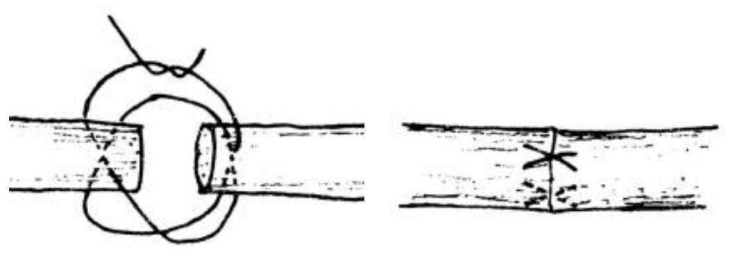 将针线拔出后,使组织创缘对合,然后进行结扎。
