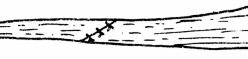 3.缝合方法:由于肌腱纤维易被纵向分离,故缝合时应采用独特的方法。①双“十”字缝合(图4-38),操作简单,临床实用,组织损伤轻微,适用于多数肌腱缝合。②双“∝”字缝合(图4-39),适用于较粗的肌腱断裂缝合。③细小、扁平的肌腱断裂可做侧壁单纯间断缝合(图4-40)。缝合时先将两断端寻找拉出,用血管钳或两枚针头设法将肌腱两断端固定,再用锋利刀片切除肌腱断端少许,按图示进针,收紧缝线,然后结扎。
