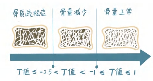 骨密度是用单位面积(或体积)内矿物质的含量表示,临床使用骨密度值时,通常用T值表示(T值是一个相对值,正常参考值在-1和+1之间,当T值低于-2.5时就可以确诊为骨质疏松症了),但骨密度正常不等于不会患骨质疏松症。