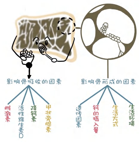 “骨松君”的影响因素主要有两大类,一是影响骨吸收的因素,包括雌激素、活性维生素D、降钙素、甲状旁腺素等;二是影响骨形成的因素,包括遗传因素、钙摄入量、生活方式和生活环境,如吸烟、酗酒、高蛋白与高盐饮食、大量饮用咖啡等。此外,我们日常生活中的其他习惯、运动锻炼强度和频率、营养摄入、内分泌平衡等,也都影响着骨头质量。目前还有研究表明“骨松君”的出现受种族、性别、年龄、家族史的先天因素影响,也受营养、生活方式、免疫和内分泌变化等影响。 4VjV7OmSWjUAZzImsyulMUY0fQp5y77nkMGdQ1i6oyX+iNVvdc6cfMgBpCECkW4f
