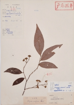 【形态特征】 落叶灌木或小乔木,高2~8m。幼枝有褐色星状毛,后脱落。时片坚纸质,长椭圆形或卵状椭圆形,长5~11cm,宽3~6cm,先端渐尖、急尖或短尾状,基部宽楔形,边缘具细小不明显的小齿,两面中脉和侧脉常具星状绒毛;叶柄长达3mm,具星状绒毛。总状花序顶生,长3.5~4cm,有花5~6朵,腋生有化1~3朵;花梗长1~2cm;花萼杯状,具5浅齿,密被星状绒毛;花冠5深裂,筒部长4mm,裂片长15mm,在花蕾时作镊合状排列,外被星状绒;雄蕊10,花丝分离部分的下部被绒;子房上位,被黄褐色柔毛。果实球形,直径8~13mm,顶端不具凸尖,密被星状绒毛。种子表面光滑或浅凹。花期5—6月,果期9—10月。