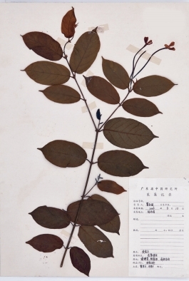 【形态特征】 藤状灌木,嫩枝幼叶具黄色柔毛。叶对生,叶片长圆形至长圆状披针形,先端渐尖,基部圆形或略呈心形,全缘;叶柄下部有关节。穗状花序生于枝顶,下垂,略有芳香,雄蕊10,雌蕊1;子房下位。果实橄榄状,黑褐色或棕色,长2.5~4cm,有5棱。花期5—9月,果期6—10月。