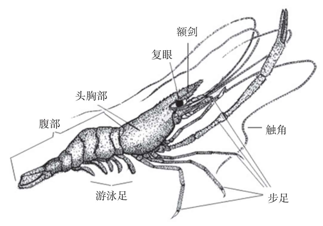 图2-2 沼虾外形(以雄性日本沼虾M acrobranchium nipponense 为例)