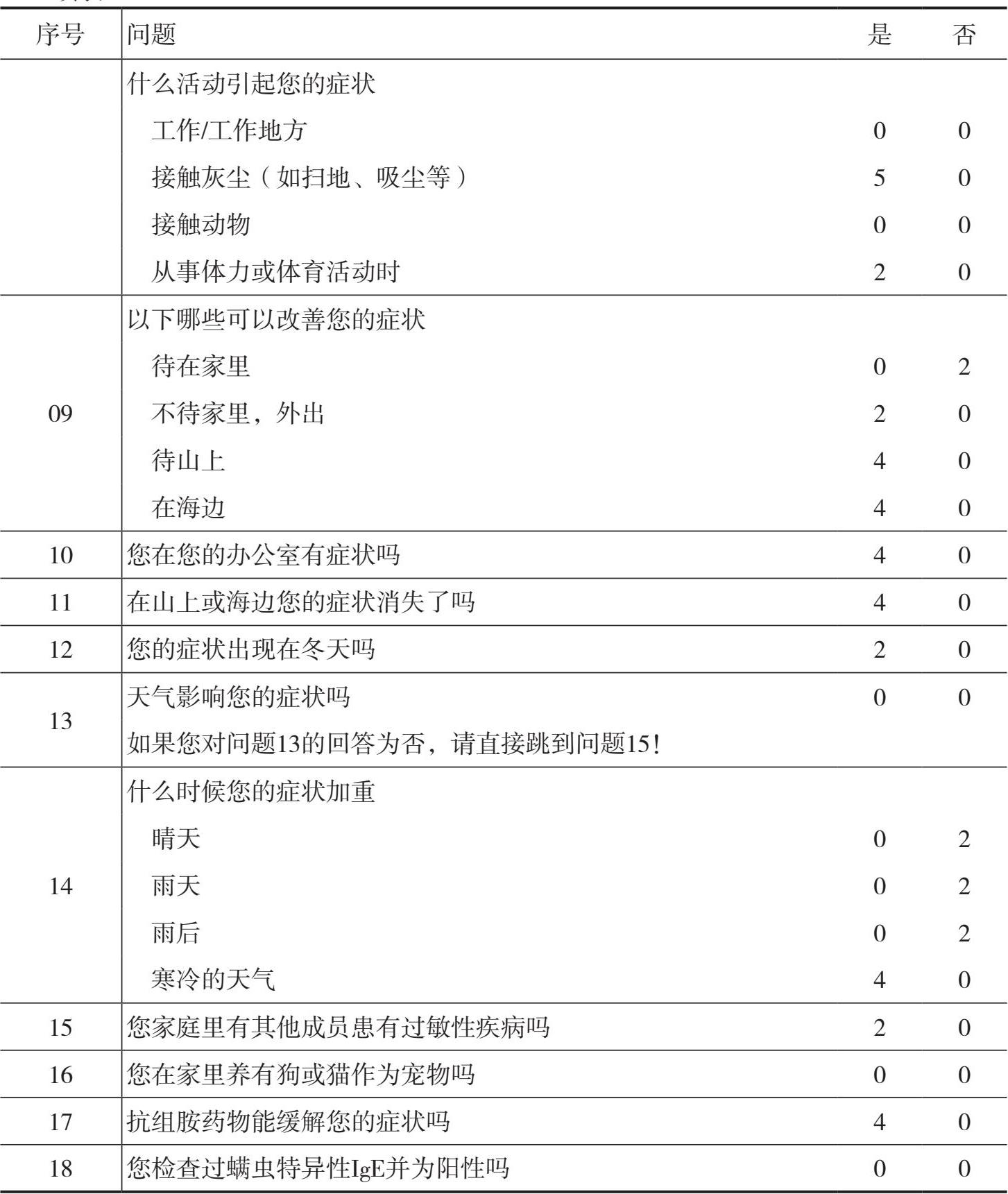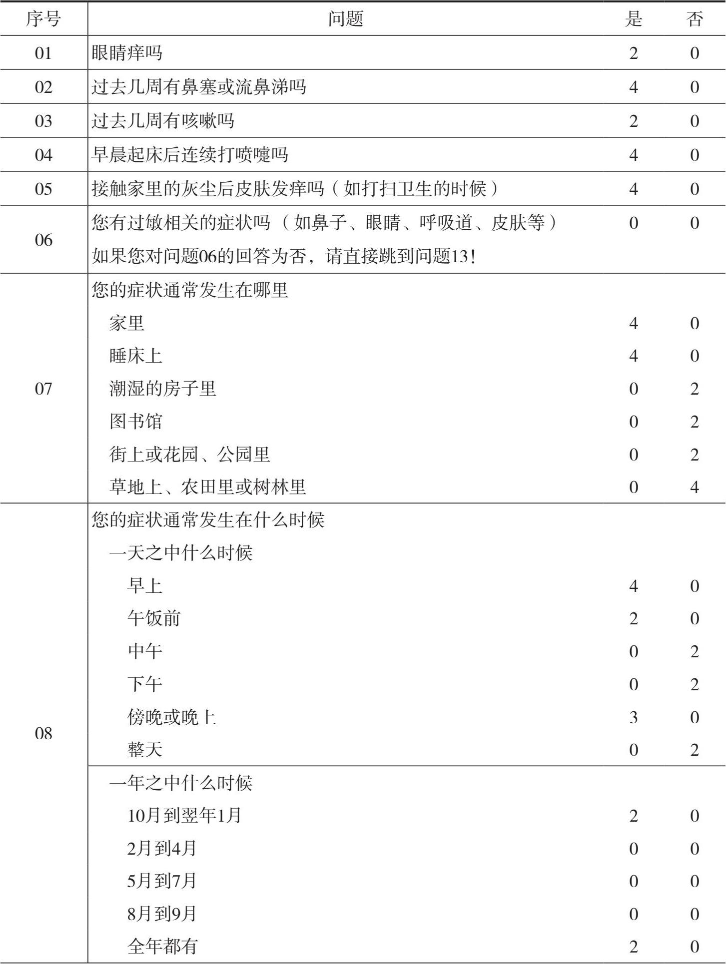 鉴别感冒与螨虫引起的过敏性疾病评分问卷