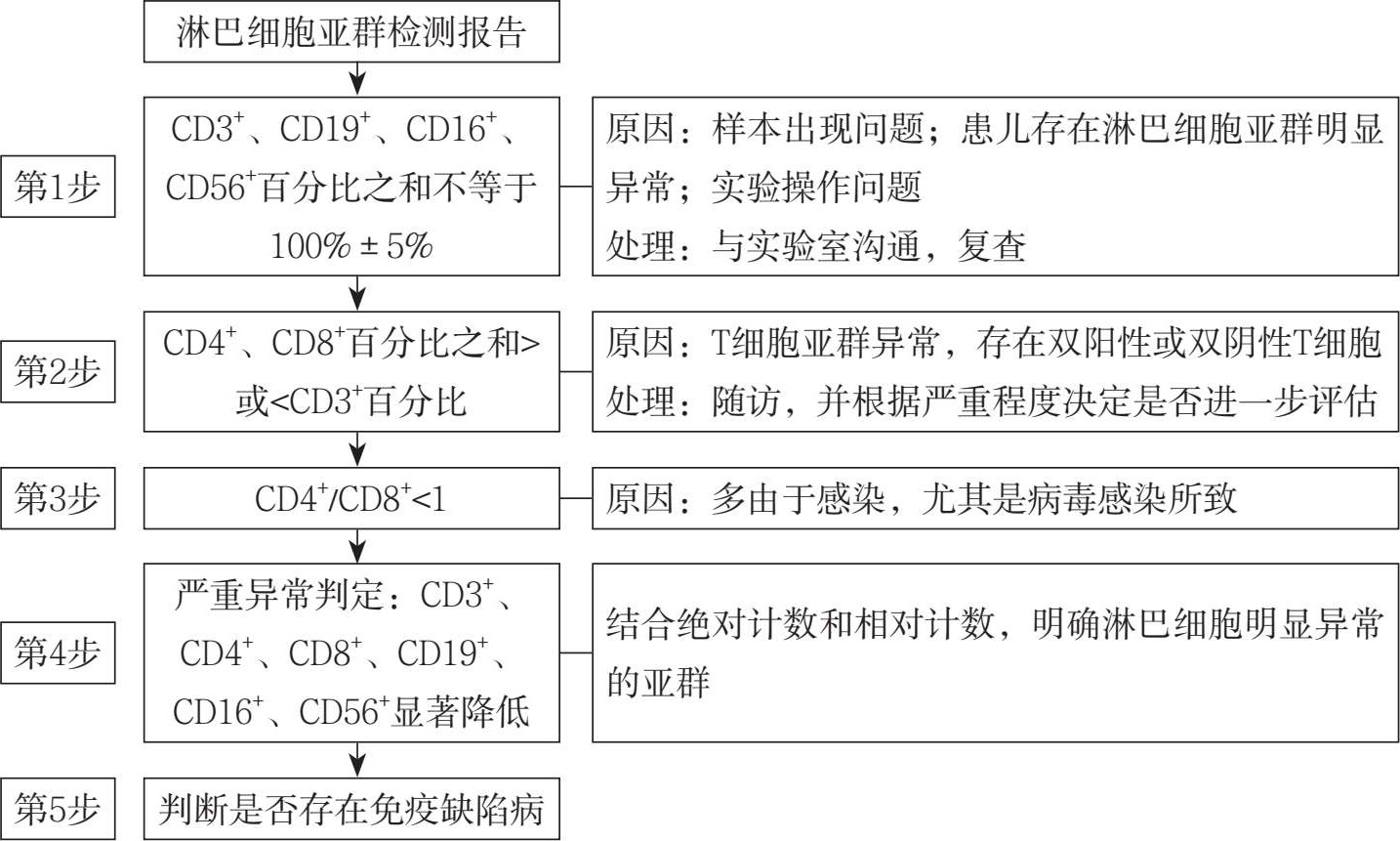 图2-5 淋巴细胞亚群检测报告判断流程