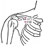 [定位] 在胸前壁的外上方,云门穴下1寸,平第1肋间隙,距正中线6寸(如图2-3)。