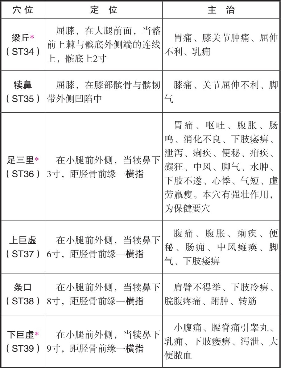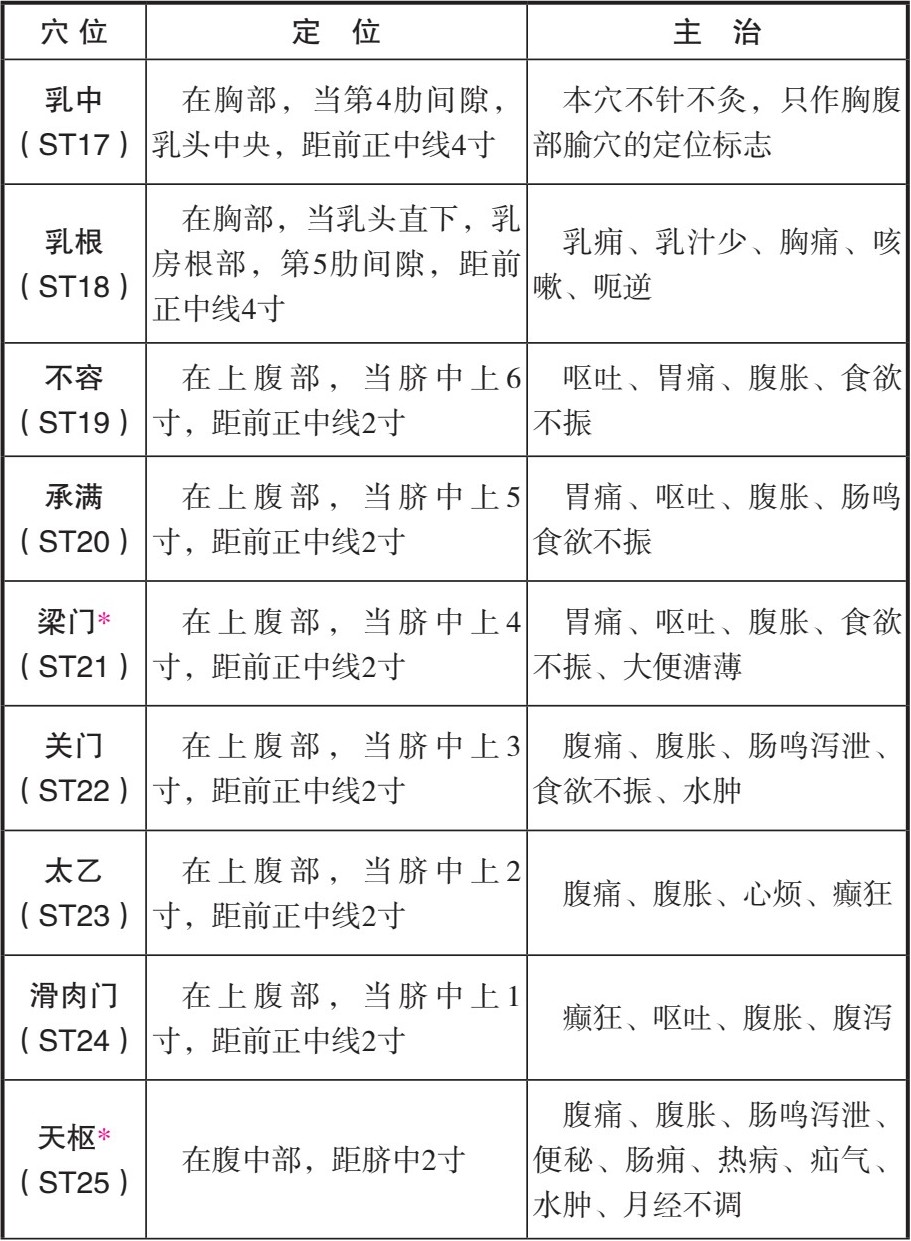 表2-4 足阳明胃经穴位一览表