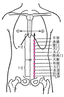 [定位] 在上腹部,当脐中上1寸,距前正中线2寸(如图2-18)。