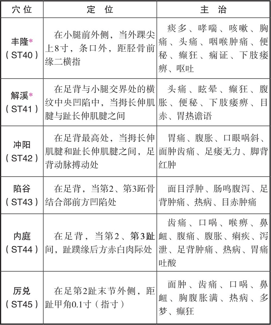 [主治]胃痛、腹胀、口眼㖞斜、面肿齿痛、足痿无力、脚背红肿。