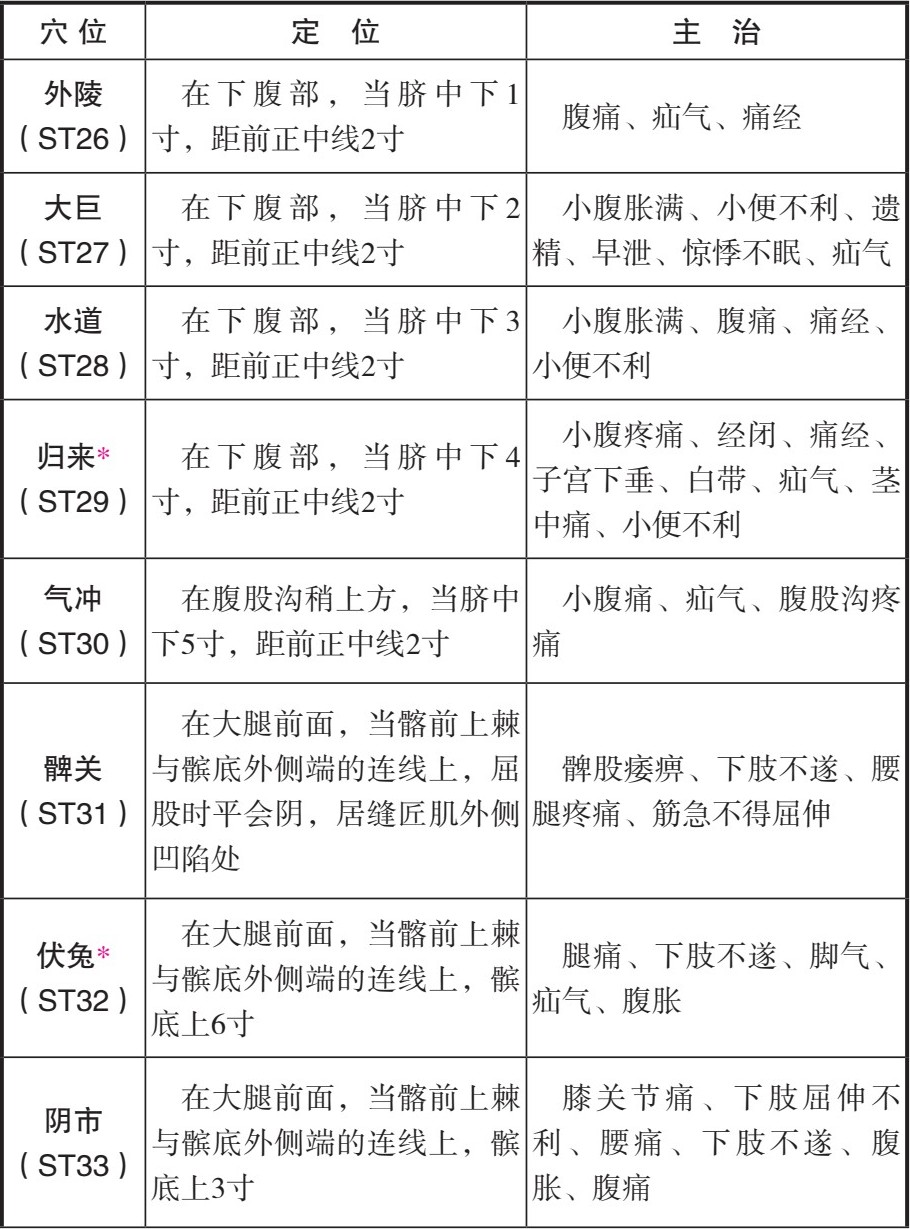 [主治]小腹疼痛、经闭、痛经、子宫下垂、白带、疝气、茎中痛、小便不利。