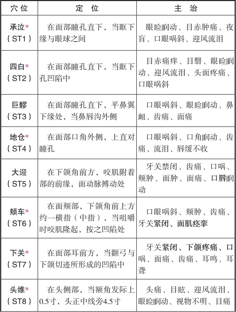 ①头面部穴位以局部及附近组织病变为主:面、口、耳、目、头。