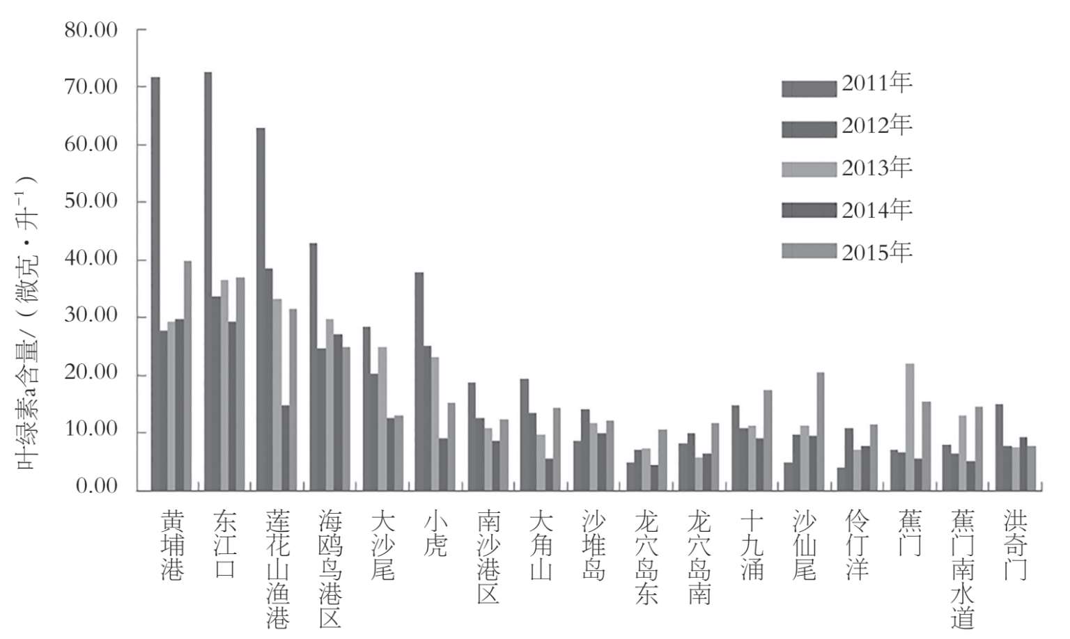 图1-13 2011—2015年广州海域叶绿素a含量变化