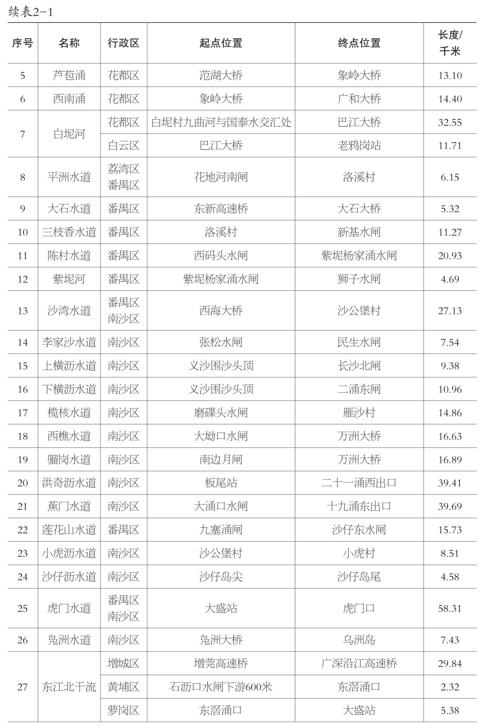 注:涌需遵循以下原则。1.跨区并且名称在各区不同的河涌,该类河涌名称统一取下游出口行政区河涌的名称,统计河涌数量时计入河涌出口所在行政区。2.跨区、名称相同的河涌,该类型河涌统计数量时计入河涌出口所在行政区。3.一河两岸河涌,该类河涌统计数量时计入一侧所在行政区内。