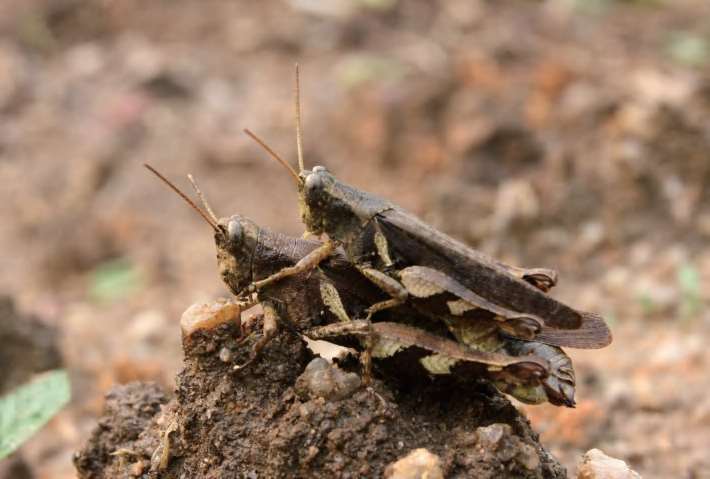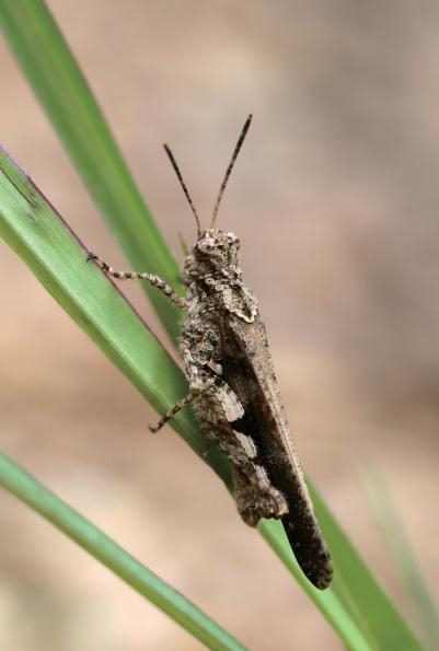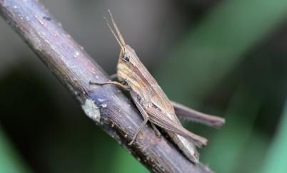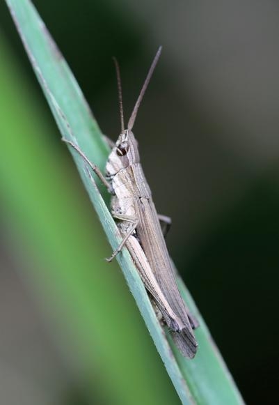 体黄褐色或暗褐色,会随环境不同而改变,后足腿节有2条黄(黑)、白宽型斜斑。