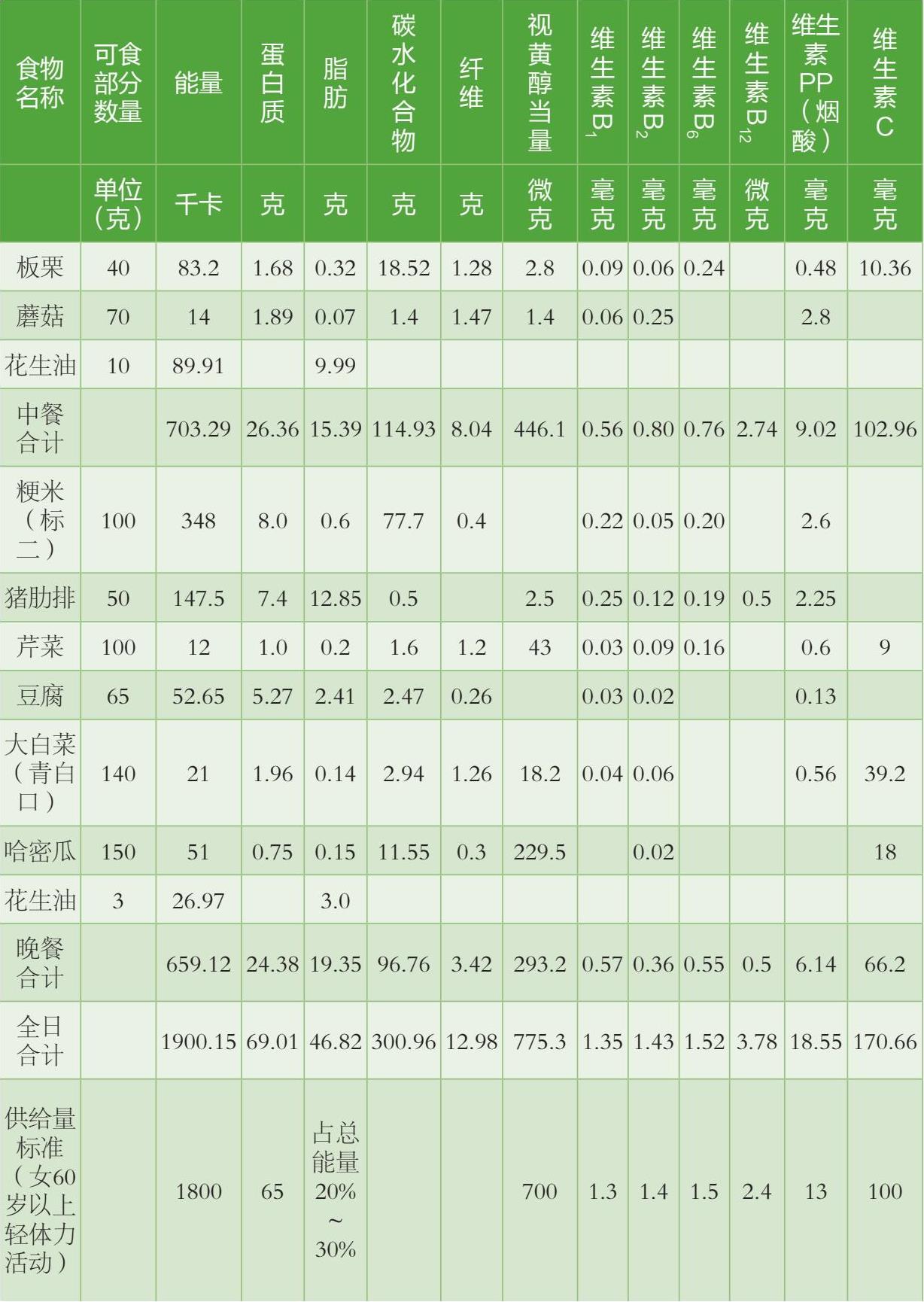 尝试者注意:在制作膳食计划时,一定要考虑到年龄、性别、劳动强度等所需的营养素的质和量,以及肠胃消化功能等状况。