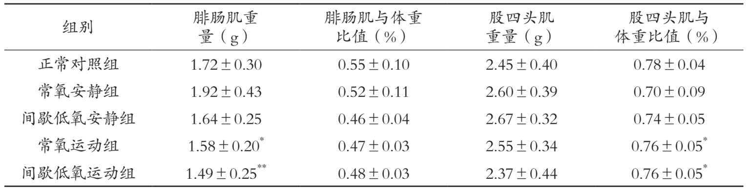 表6 4周间歇低氧运动后大鼠腓肠肌和股四头肌的变化情况表