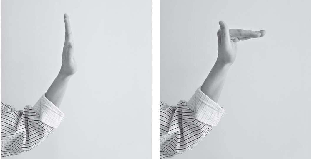 (2)将食指、中指、无名指、小指分别屈曲至90°及屈曲成虎爪位,持续10s然后放松。重复做3~5min,每天做3~4次(图6-3)。