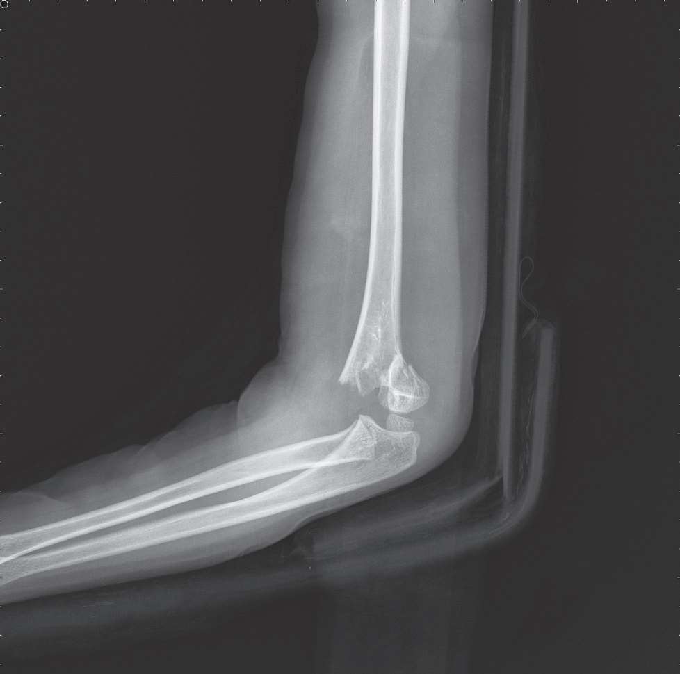 2.肘部骨性三角关系存在,表示未脱位。肘处于半屈位,肘窝饱满。有时可在肘窝触到肱骨骨折端。