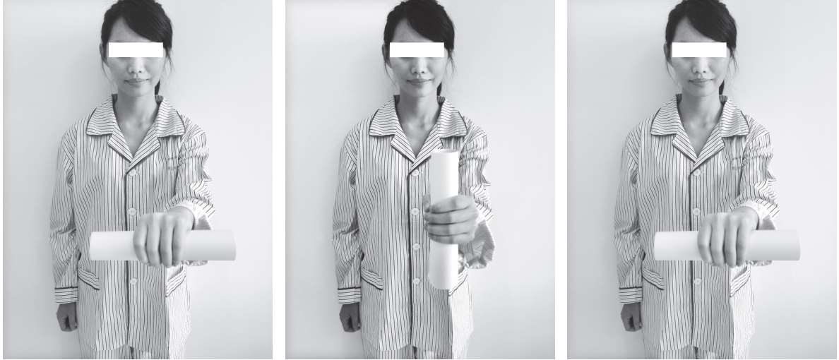 2.在医护人员指导下,及早练习肘关节屈伸(图6-4)和前臂旋转活动(图6-5)。