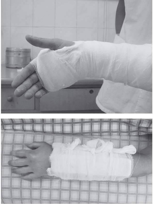 1.无移位的骨折 不需要整复,仅用掌、背两侧夹板固定2~3周即可。