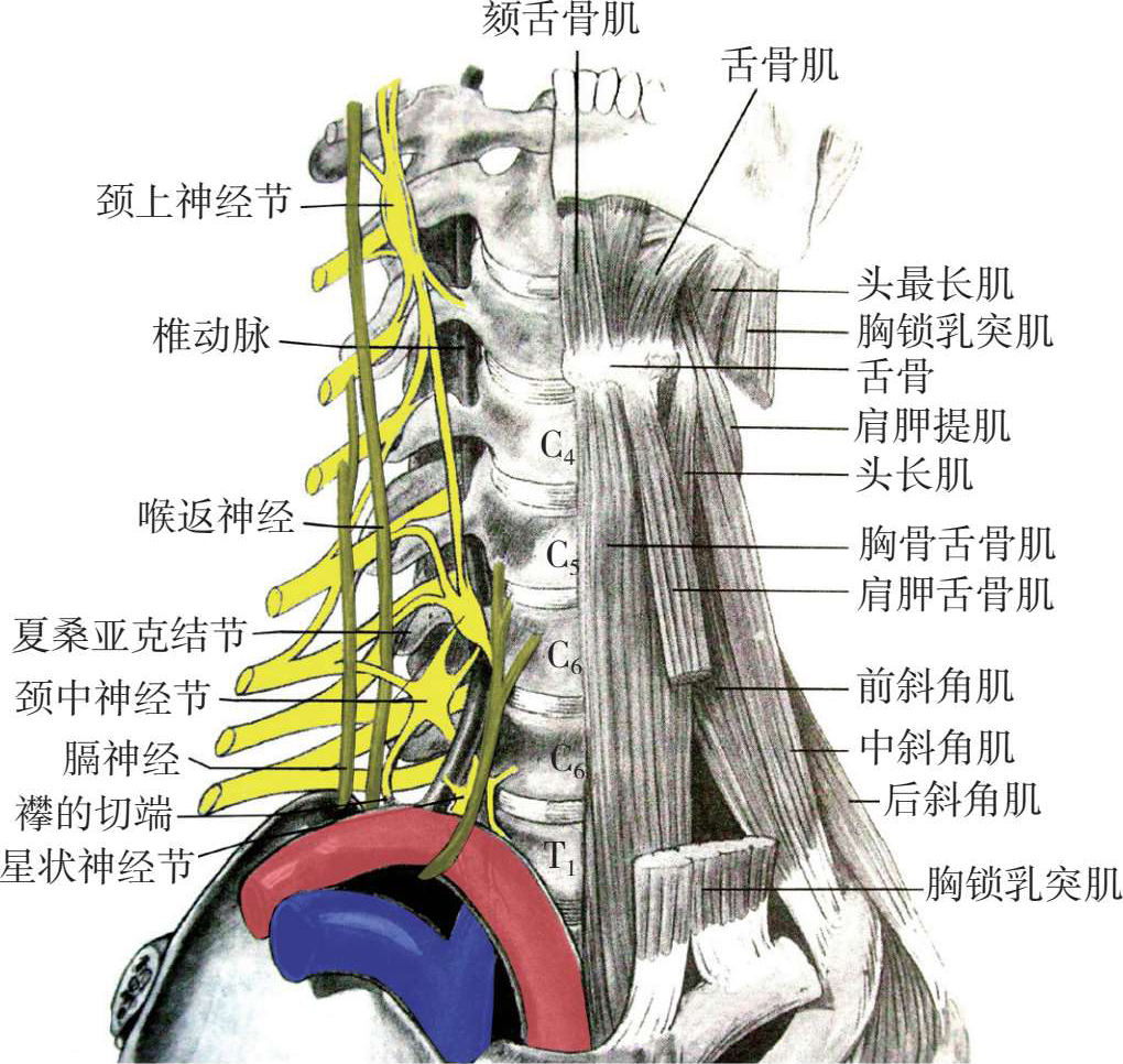 图3-14 星状神经节与肌肉、血管的解剖