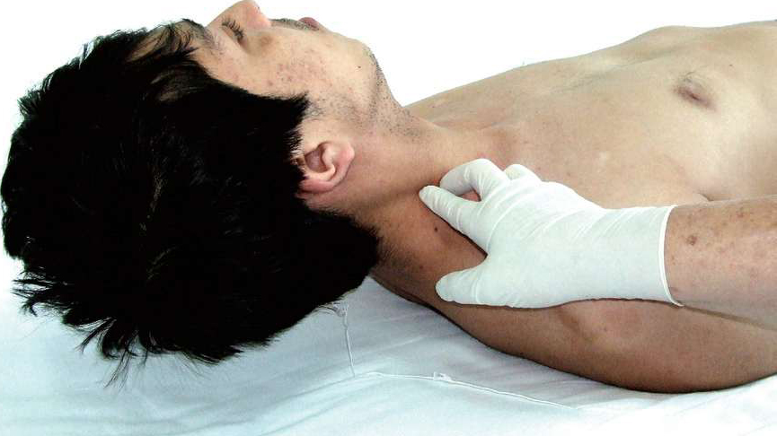 图3-9 将头抬起离床,可见胸锁乳突肌紧张成形