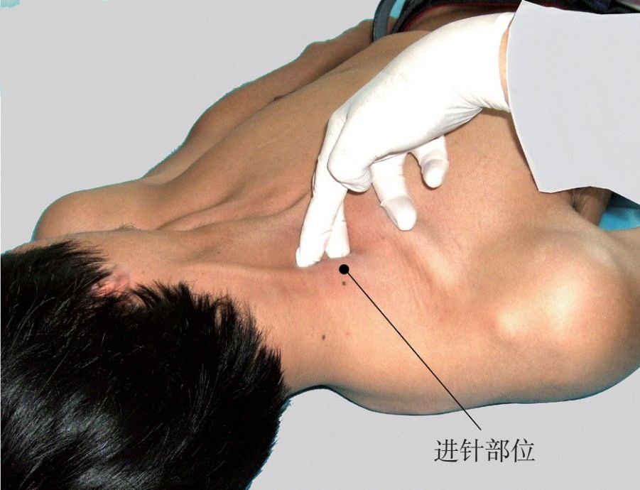 (1)定位:穿刺间隙通常采取C 7 /T 1 间隙,通过体表触诊可定位C 7 棘突,以此为标志找到C 7 /T 1 间隙。
