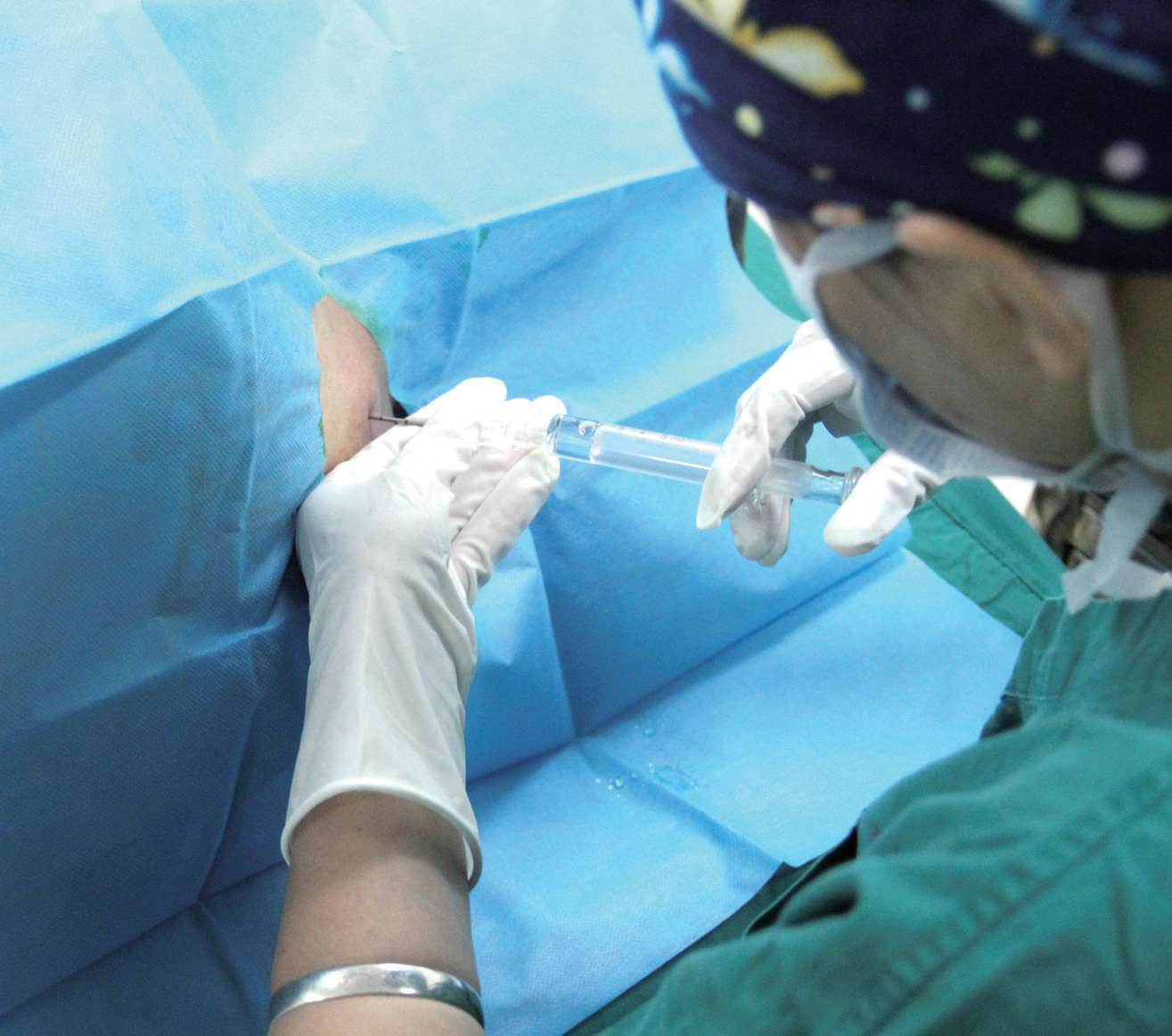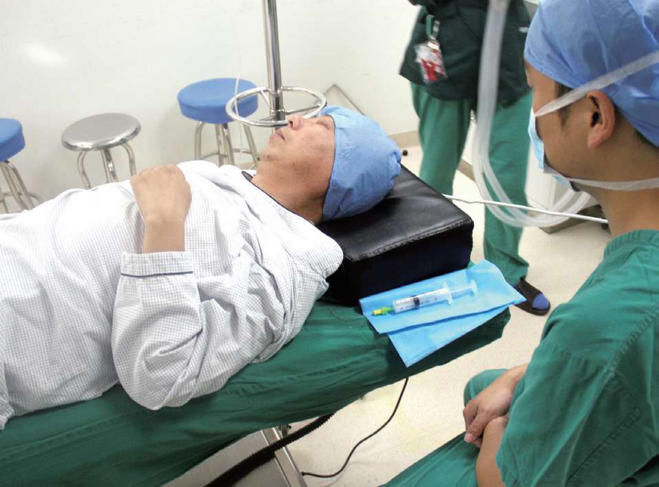 图3-32 患者在平卧位体位下进行缓慢注药