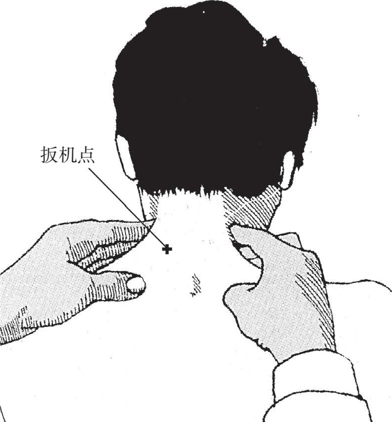 图3-1 沿棘突触诊,在小关节突关节的间隙部位,长可触及敏感的压痛点,在该处用拇指触诊,疼痛一触即发,故名“扳机点”