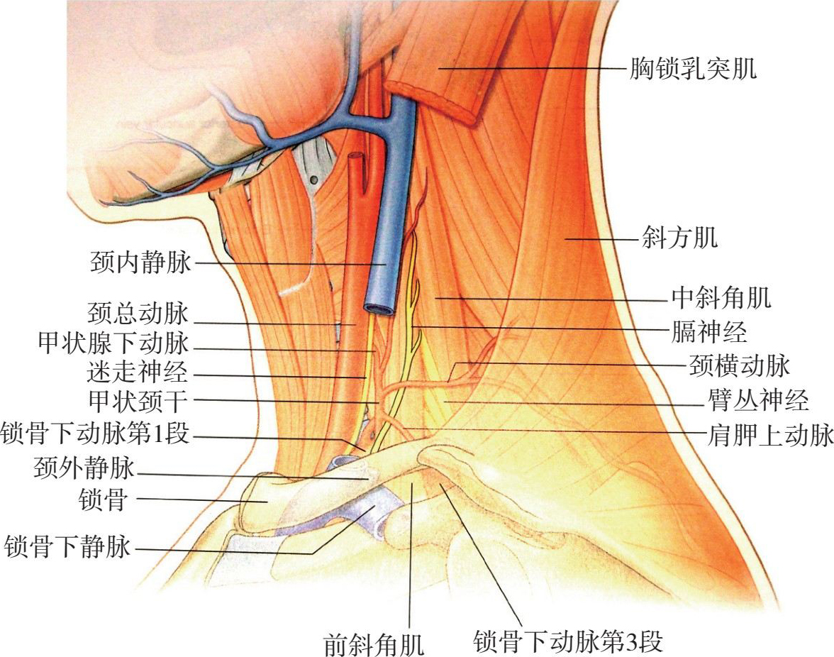 图3-14 星状神经节与肌肉、血管的解剖