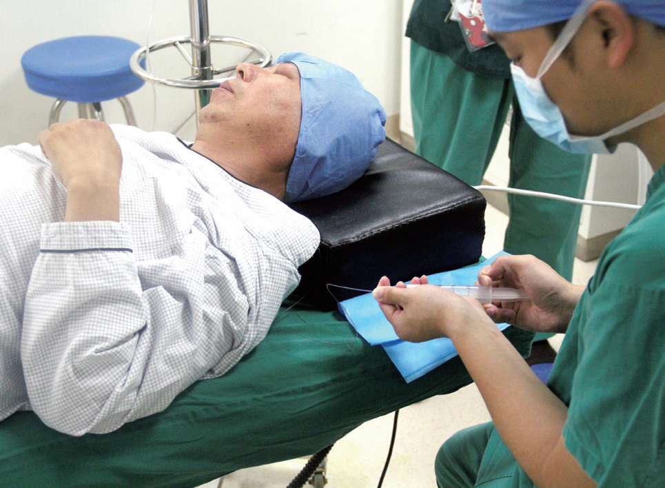 图3-32 患者在平卧位体位下进行缓慢注药