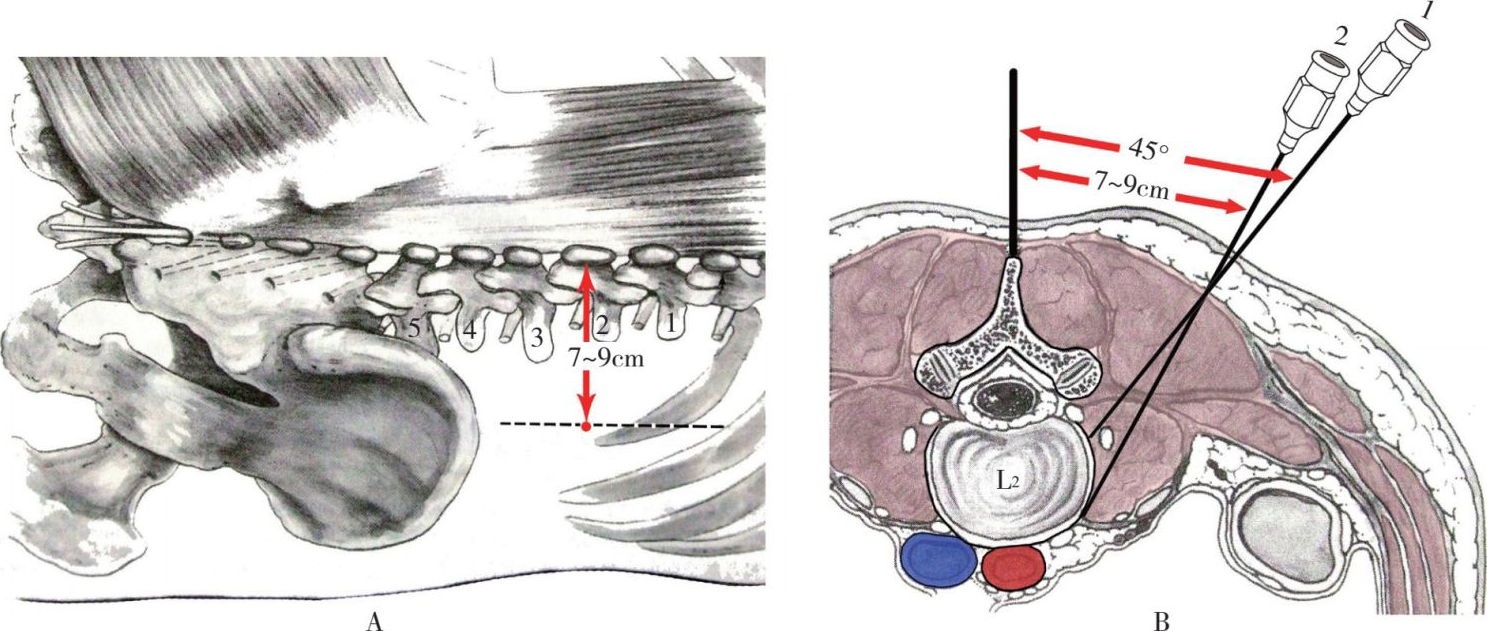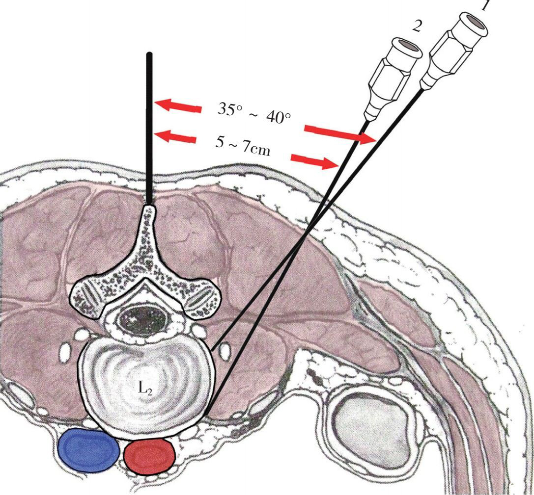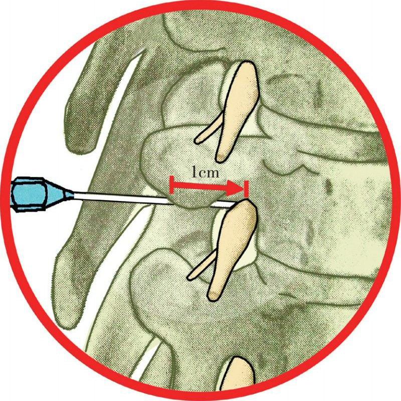 2.穿刺针也不能距离棘突中线太近或过度向内倾斜,以免误入椎管损伤脊髓神经。
