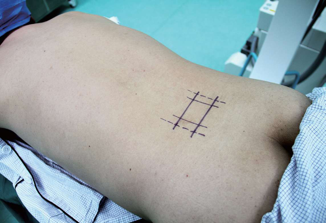(2)消毒铺巾:按照脊柱外科手术常规消毒铺巾方法进行。
