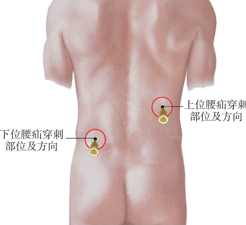 (3)局部麻醉:在穿刺点周围以1%利多卡因做皮丘,进行局部麻醉。