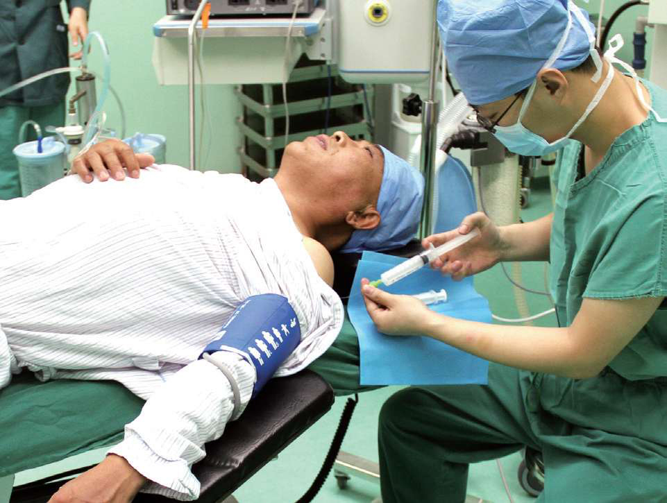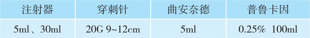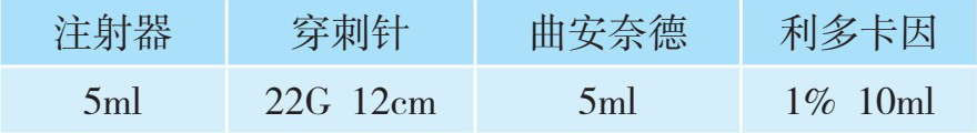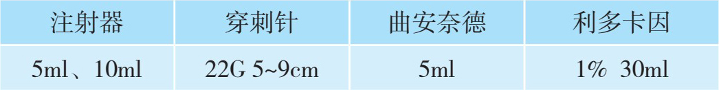 ②对局麻药液的总容量应该认真考虑,是单侧注药,还是双侧注药,共注几点,按每点5ml计算需要多少药液,均应详细计划。